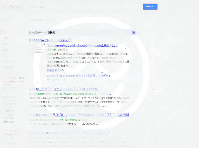 こんにちは。 東山です。 Googleで「let it snow」 と検索すると雪が降る仕様に。 遊...